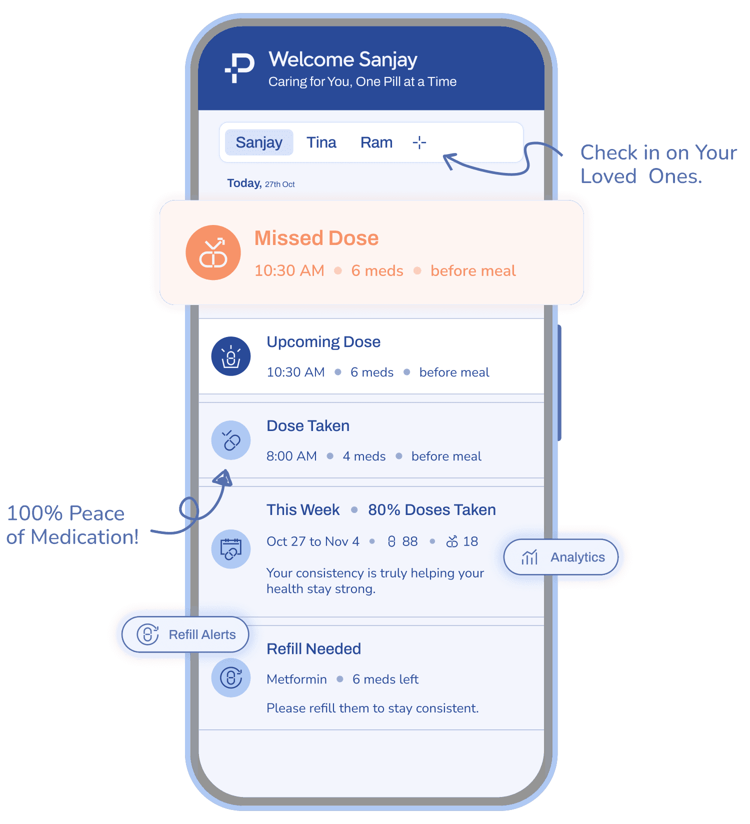 Take control of your daily medication routine with real-time dose reminders, refill alerts, and easy tracking — all from your phone.