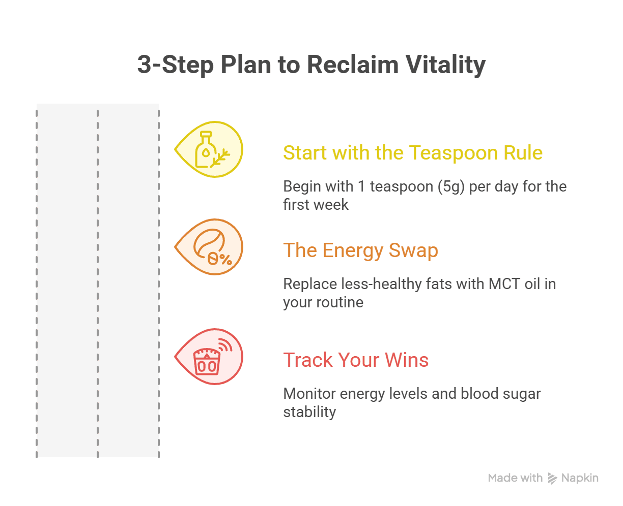 The Energy Swap: Use MCT oil to replace a less-healthy fat in your routine. Stir it into your morning coffee or blend it into a smoothie. It is flavorless, odorless, and gives you an immediate mental boost .